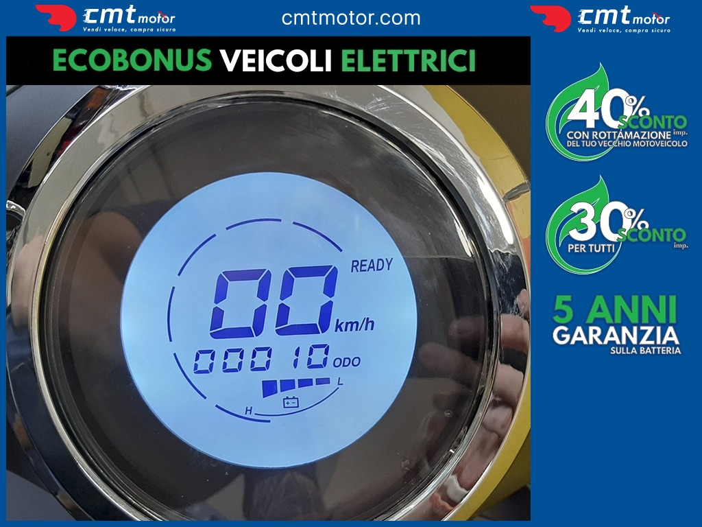 - 40% Sconto Ecobonus con la rottamazione del tuo vecchio scooter -> 3.830 € <br> - 30 % Sconto Ecobonus per tutti -> 4.298 € <br> - Garanzia 5 anni sulla batteria