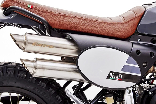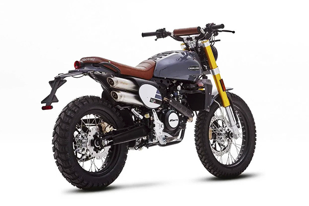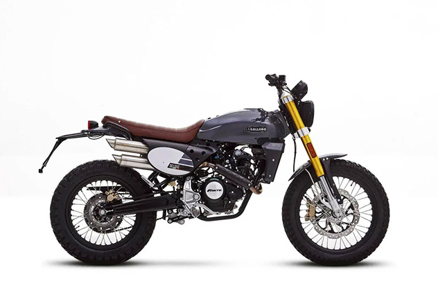 Caballero Deluxe 125 anno 2022 condivide la stessa base tecnica della sorella 125 Scrambler, distinguendosi per un look esclusivo: una colorazione dedicata, un manubrio con traversino e un'elegante combinazione di serbatoio e parafanghi in grigio ardesia lucido, che risaltano accanto alla sella in pelle marrone.
