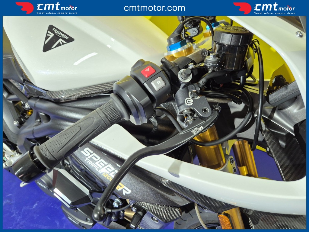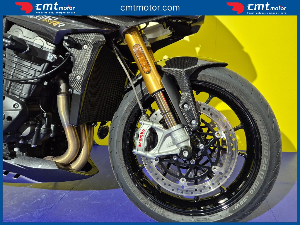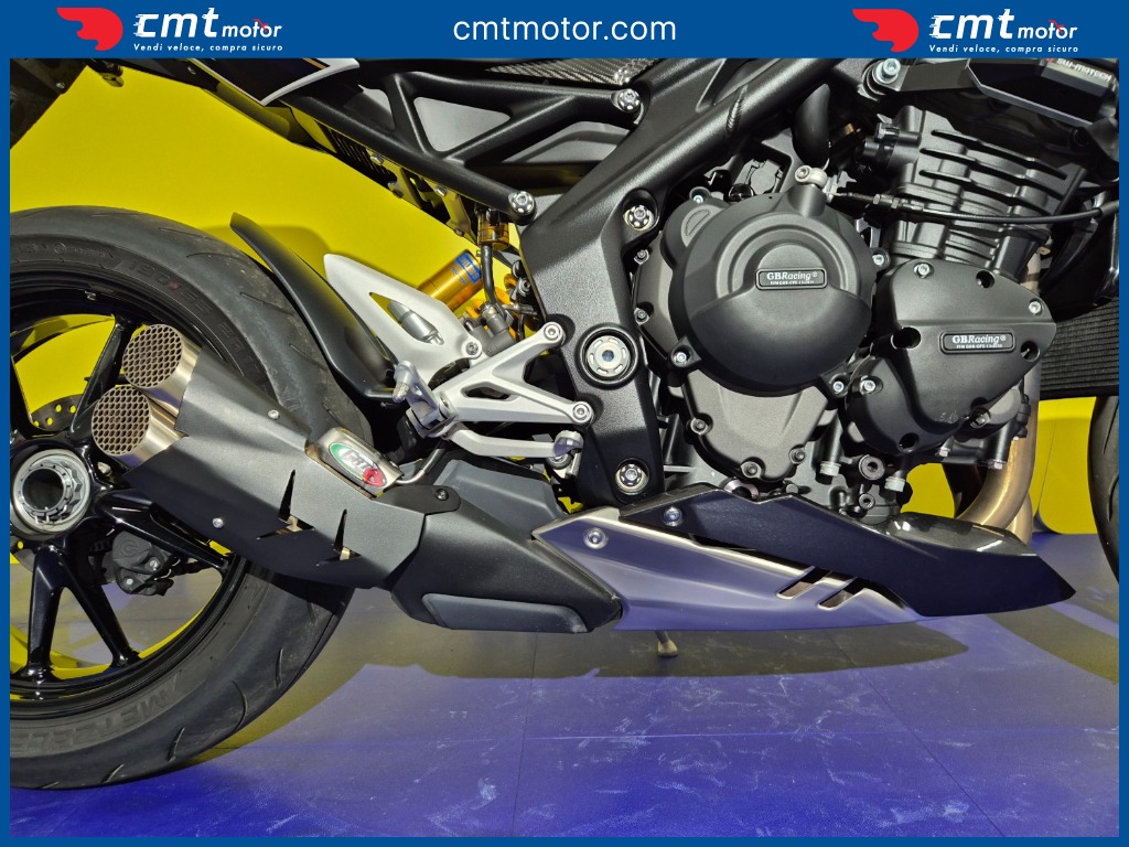 SPORTIVA ESCLUSIVA DAL DESIGN ICONICO E RAFFINATO EQUILIBRIO PERFETTO TRA ELEGANZA BRITANNICA E PRESTAZIONI ESTREME LINEE AGGRESSIVE CON SEMICARENATURA E DETTAGLI IN FIBRA DI CARBONIO POTENTE 3 CYL 1160CC 180CV/125 NM CICLISTICA TOP SOSP. ELETTRONICHE ÖHLINS, IMP FRENANTE BREMBO STYLEMA RIDING MODE CORNERING ABS + TC STRUM TFT CONNESSA QUICKSHIFTER + - CRUISE KEYLESS GARANZIA TRIUMPH 2/27