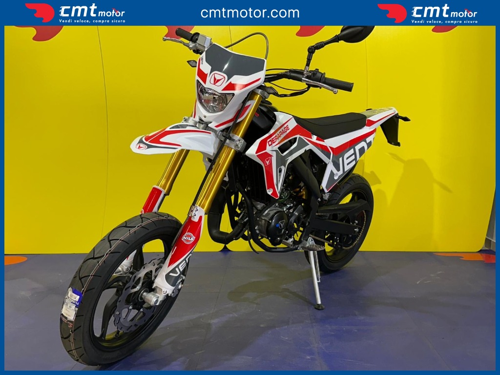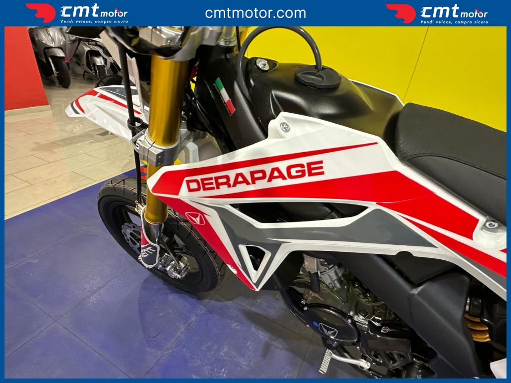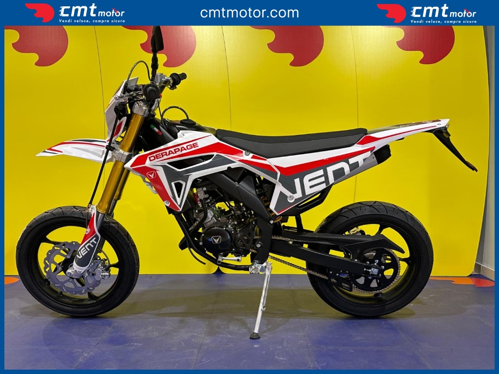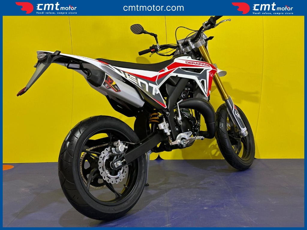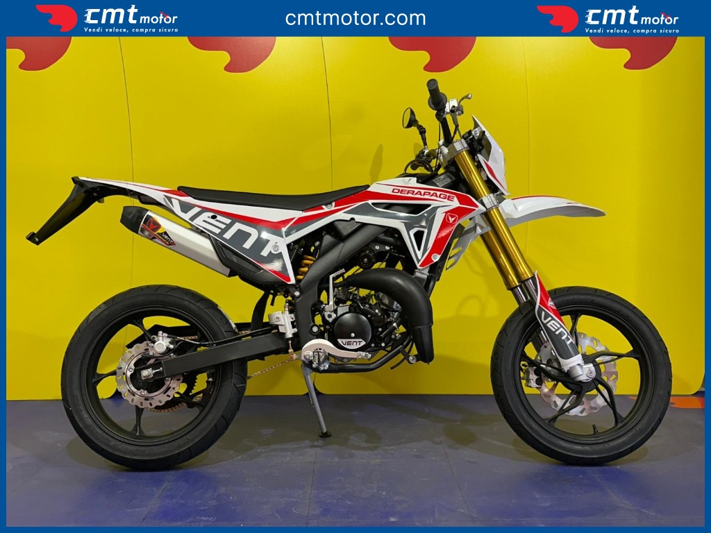 La prima esperienza in moto ti rimarrà nel cuore per sempre! DERAPAGE 50 è il motard che ti permette di affrontare il traffico quotidiano per andare a scuola tutti i giorni e divertirti con gli amici in tutta sicurezza, senza rinunciare allo stile da vera racing grazie alle grafiche replica del team VENT che corre nel Campionato Nazionale Motard e all'avanzata dotazione tecnica degna di una moto di cilindrata superiore. Il brioso motore Minarelli 50 cc 2T di ultima generazione, il robusto telaio perimetrale unito alla sospensione a steli rovesciati da 41 mm e il potente impianto frenante con disco da 290 mm, portano DERAPAGE 50 ad essere la moto di riferimento sul mercato in termini di prestazioni, affidabilità e sicurezza.